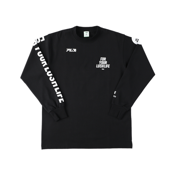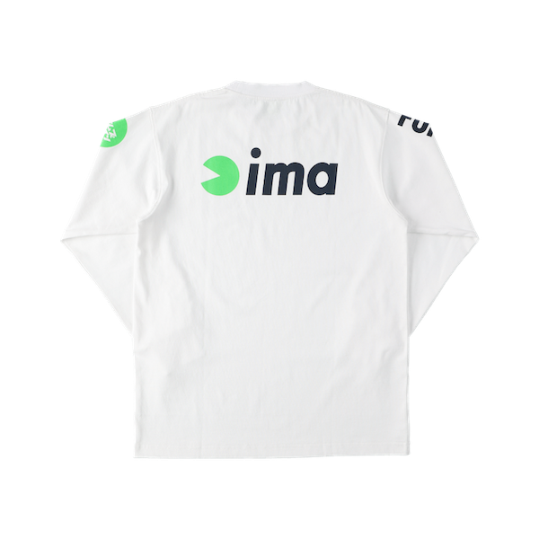 Original heavyweight long sleeve T-shirt made of 100% USA cotton. Thick and firm, yet comfortably soft, it makes a nice statement with the IMA tagline "FOR YOUR LUSH LIFE" scattered in the main print. It is a perfect size, so it can be worn alone or as a layering garment.