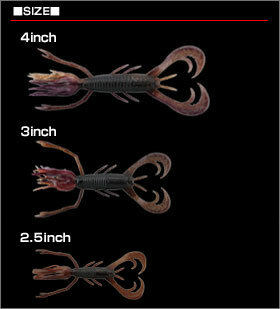 In case of No-Sinker Hula Grub, legs at body, twin tails and etc. shall be cut. The reason why scissors type long arms is not cut, is to avoid a rotation of body. It is like a rudder.