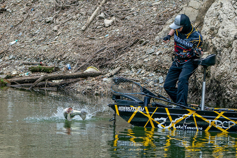 At first glance, the Huddle Gill looks like a worm, but its design concept is completely swim bait, just like the Javalon. It is a gill-shaped flat bait with sharpened swim bait capabilities, focusing on fish-attracting power, castability without a sinker, swimming power, and water-biting performance.