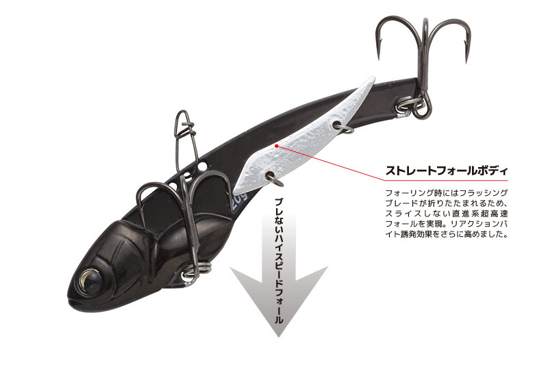 This is the ultimate evolution of metal vibration baits, featuring overwhelming casting distance of 20g, ease of use, enhanced bite-inducing super-fast sinking capability, and astonishing catch rate of big bass.