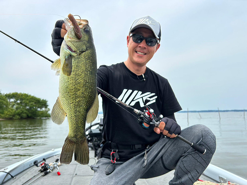 The photo shows a shot from Mr. Imae’s boat during the JB Top 50 Kasumigaura water system competition. In tournaments, the Skip Dog is always a crucial element, particularly in strategies involving reeds, where it plays an absolutely essential role.