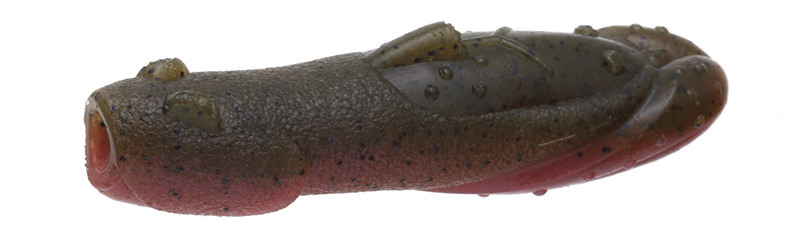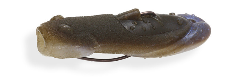 The front design, modeled after a goby, and the rear design, modeled after shrimp and crayfish, create a double-face effect. To bass hidden deep in cover, it looks like a shrimp skipping across the water's surface; when it is brought out of cover with a dog walk, it appears as a goby escaping from cover. The bottom-facing design also reflects attention to water flow. The deep and wide hook slit ensures strong hooking power, even with narrow-gap hooks.