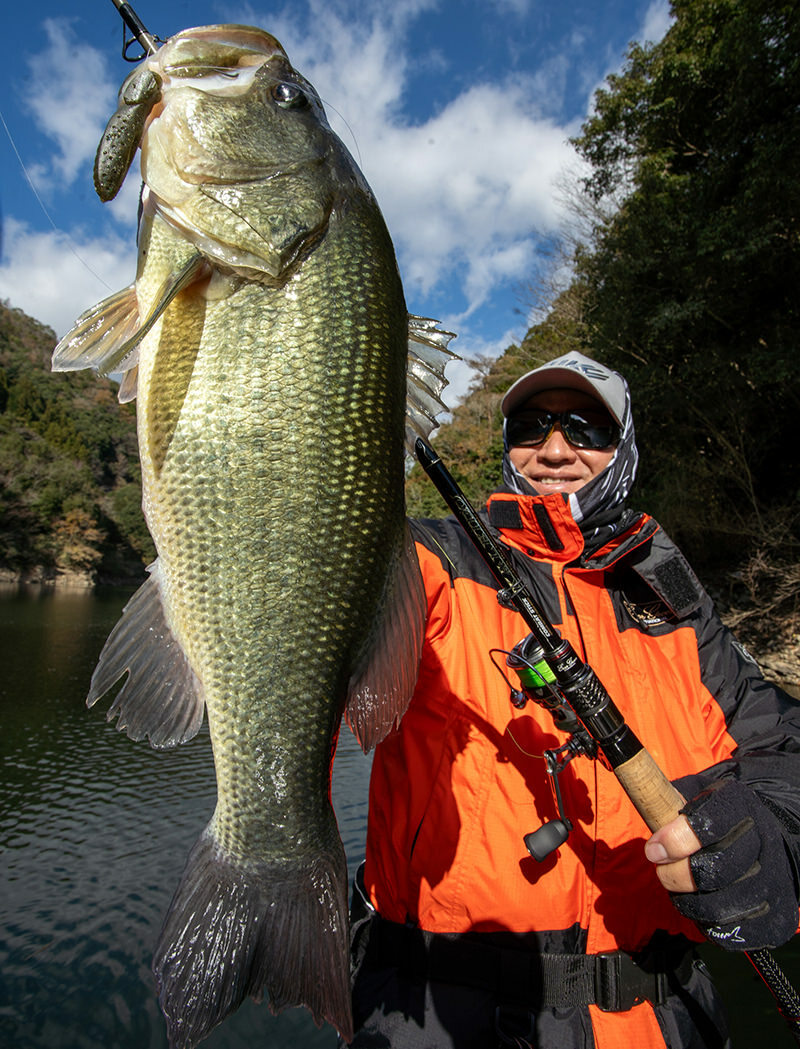 The Skip Dog has demonstrated remarkable ease of use with both bait tackle and power finesse tackle, leading to the capture of numerous big bass. The testing was primarily conducted by Mr. Oyabu in the Kasumigaura water system, while Mr. Imae handled testing in reservoirs. Whether using bait tackle or power finesse tackle like in the photos, the Skip Dog proved surprisingly easy to use, consistently catching big bass.