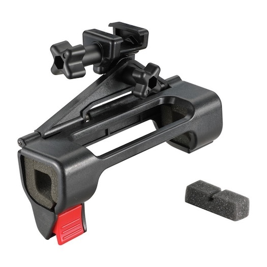 Rear holder opens with one touch and supports grip diameters of 22–35 mm.