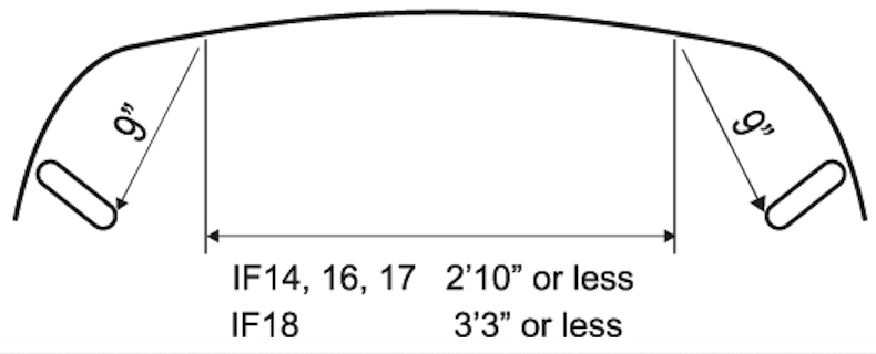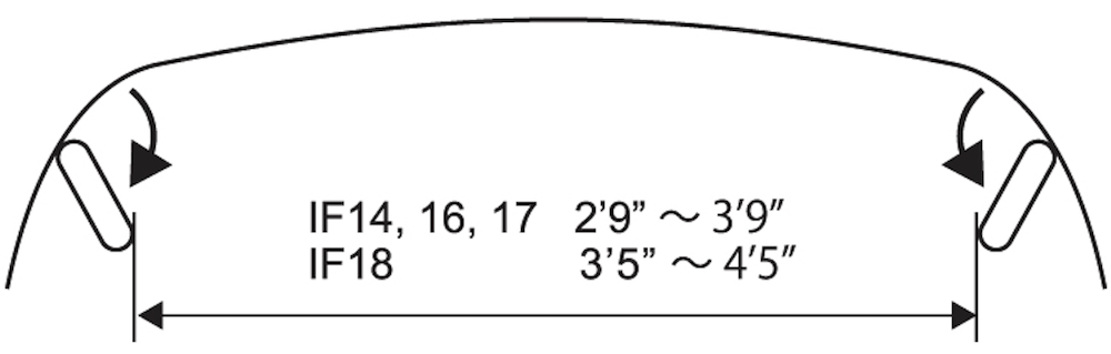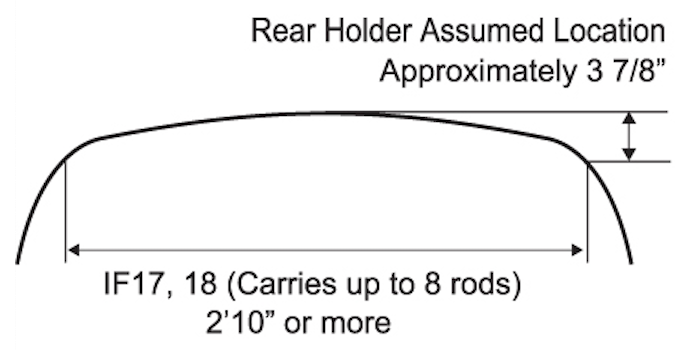 Holder frames (carrying 8 to 10 rods) of IF17 and IF18 may not fit in narrow width vehicles. They can be installed in vehicles with 2'10" or more ceiling width at the position where the rear holder is located.