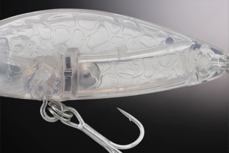 The unevenness inside the body creates a diffuse reflection, recreating the masses of plankton and nets.