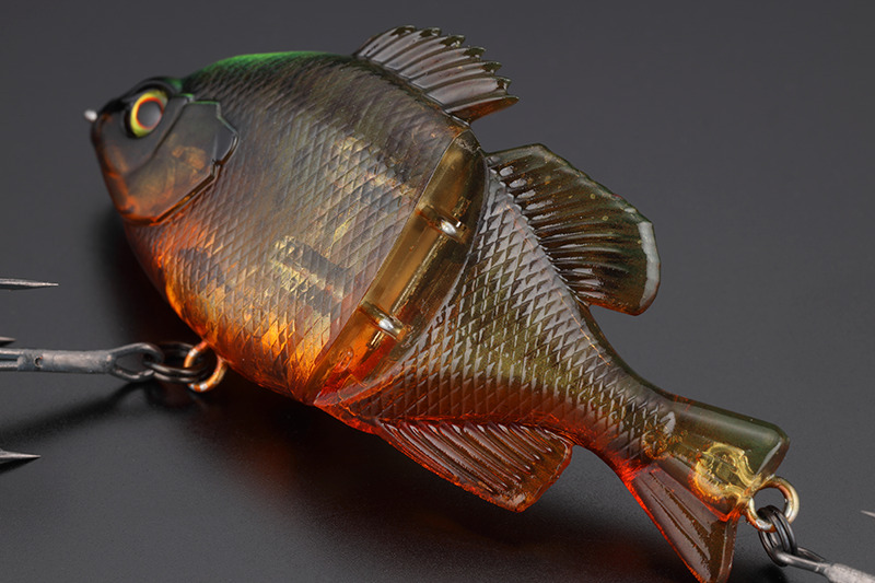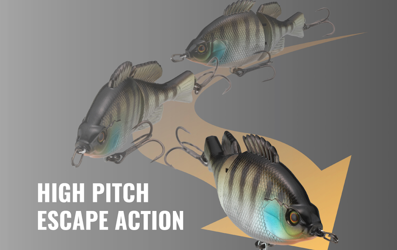 The high pitch S-shaped action reproduces the fleeing bluegill.