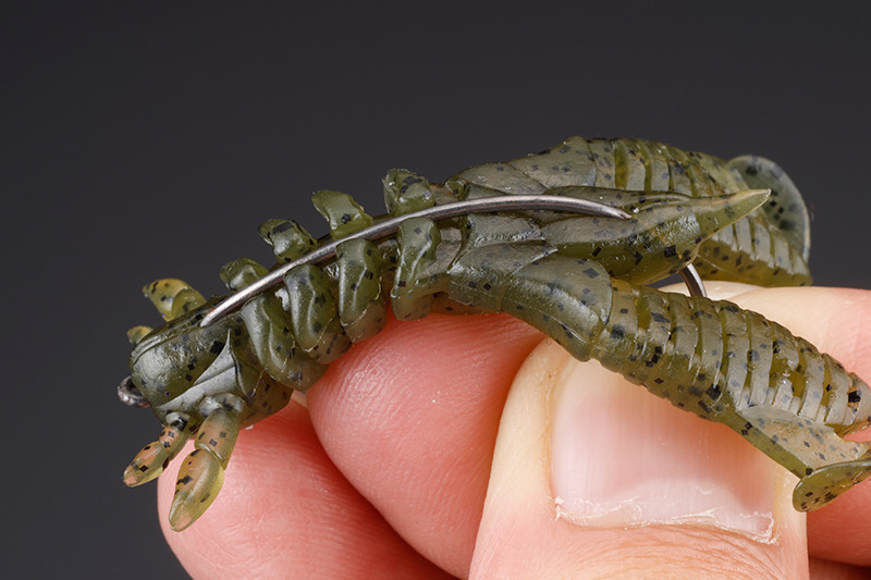 The part where the crank part of the offset hook is accommodated is filled with meat to reduce damage from bites and fights.