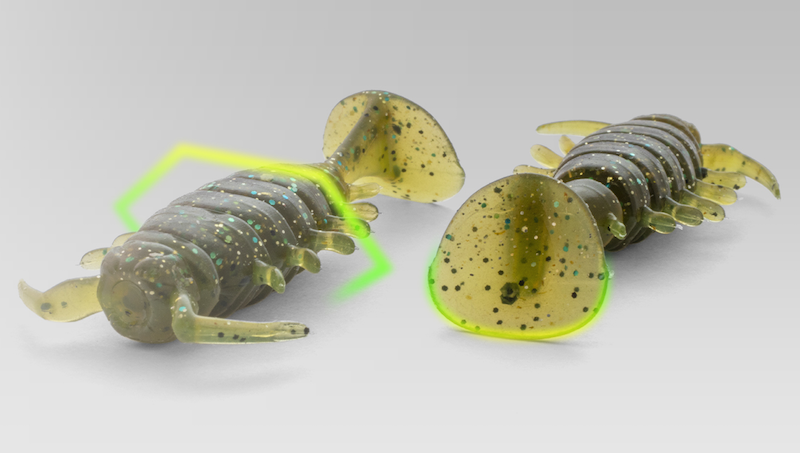 Despite being just a one-bite size at 1.5 inches, the flat yet fat body possesses a considerable presence and features an exquisite design that allows the target species to use it without any discomfort. The large-bodied shad tail grasps water even in minimal currents, generating a torque-filled movement. It is suitable for both a steady retrieve and mid-depth fishing.