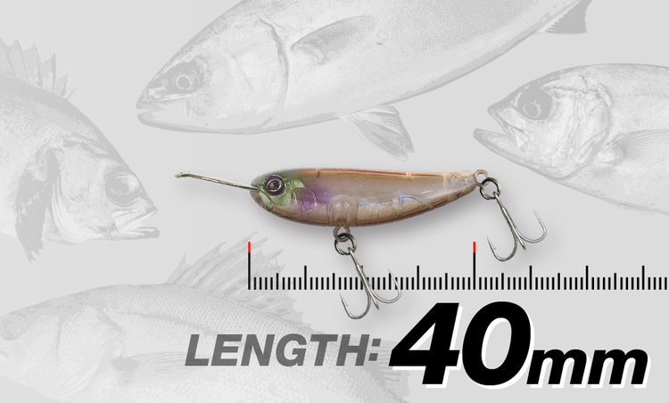 Produces a micro bait fleeing on the surface, and is compatible with a variety of small fish eaters, from standard light game targets such as rockfish, barracuda, silverfish, and seigo, to migratory fish such as wakashi/chubasu and bonito.