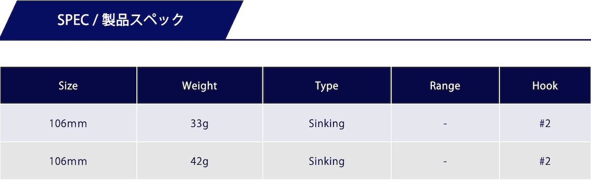 A strong model with a big size appears in the popular TEPPAN series. Hook and body plate were strengthened and developed with the theme of not missing when hook on. In particular, there is a hot request from the shore angler, and a large-diameter eye that can be fitted with a split ring or cross lock snap is adopted. The weight was arranged so that the swim was almost horizontal, and the vibration with fine pitch was transmitted to the hand, and the drag resistance was adjusted to reduce fatigue. Once you hook on it, don't miss it with Power Fight. Memorable fish with Iron PAN Strong.