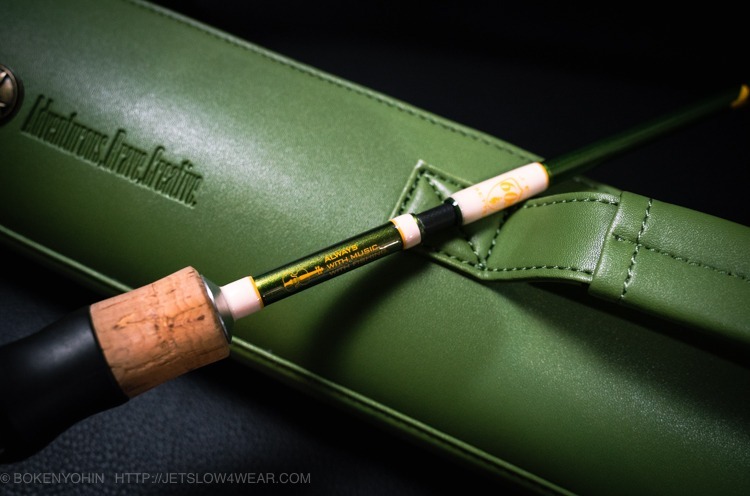 The rod blank features the hand-written musical score of Hakase’s iconic piece “Jonetsu Tairiku”, and his signature is printed on the split grip section.