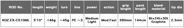 Based on the C510ML, this rod was developed in response to requests for a longer length. We aimed to create a rod that can be used with a wide range of lures, from lightweight to heavyweight lures, while still being able to catch large fish. I (Okubo) use it for cranking bass, sea bass (vibration and jerking), barramundi, stripers, redfish up to medium size, and itou.