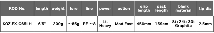 C65LH transferred from the Magnum Husky KOZ series to the Expedition series. The true value of the Okubo school, which controls power games using bait tackles. The field of activity is also wide in Japan, and it is also suitable for ryo games with light covers and bus games using Big Bait.