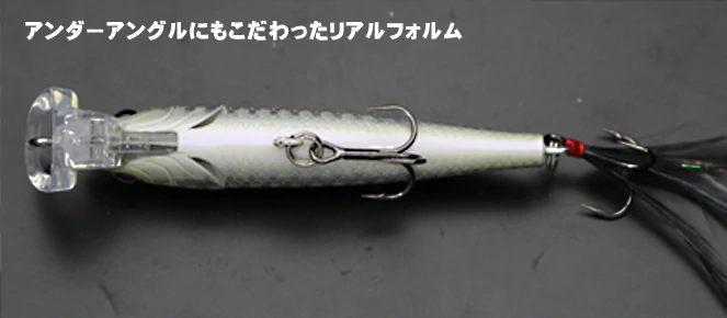 The weight is placed at the rear of the lure to achieve stress-free casting distance despite its light weight.