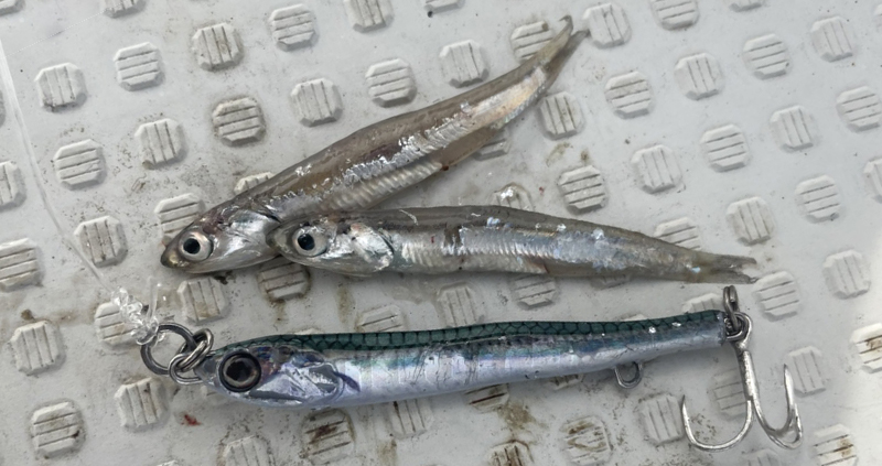 Exactly bait fish! You can fish a lot of fishes because you swim “straight”. We developed a metal jig that refer to the swimming style of anchovy and does not rotate or act. Left and right asymmetric curved body moves slightly straight with a slight action. The target with low activity that eliminates excessive appeal, brings fishing results.