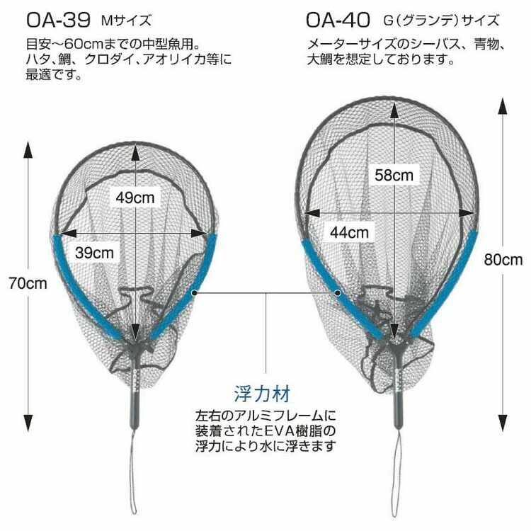 ・We also have the slightly larger OA-40 FT Pescador Net Grande. This is designed for meter-sized sea bass, blue fish, large sea bream, etc.