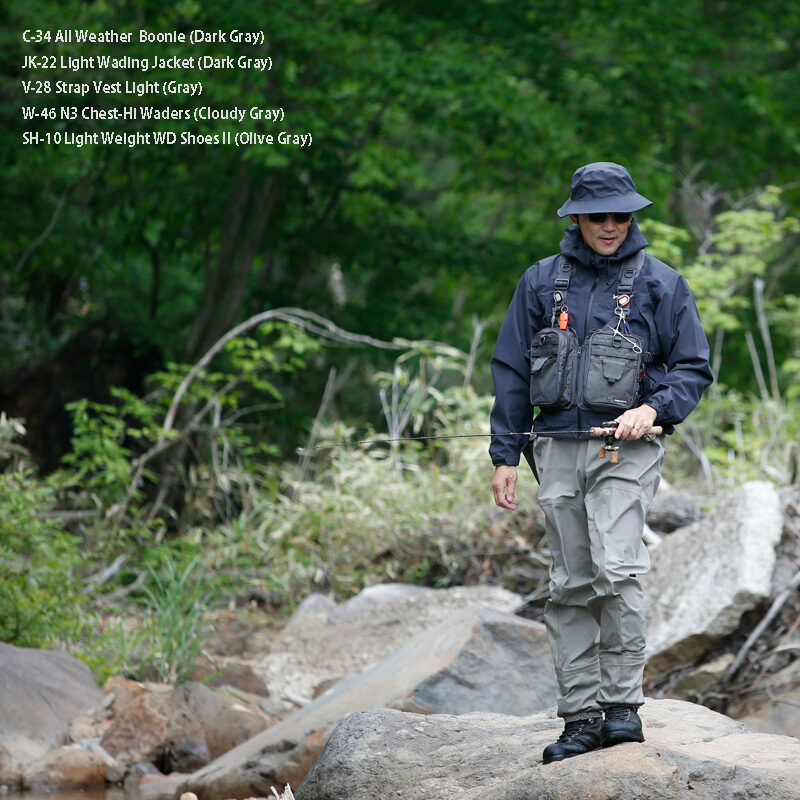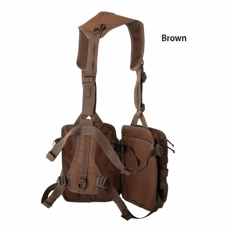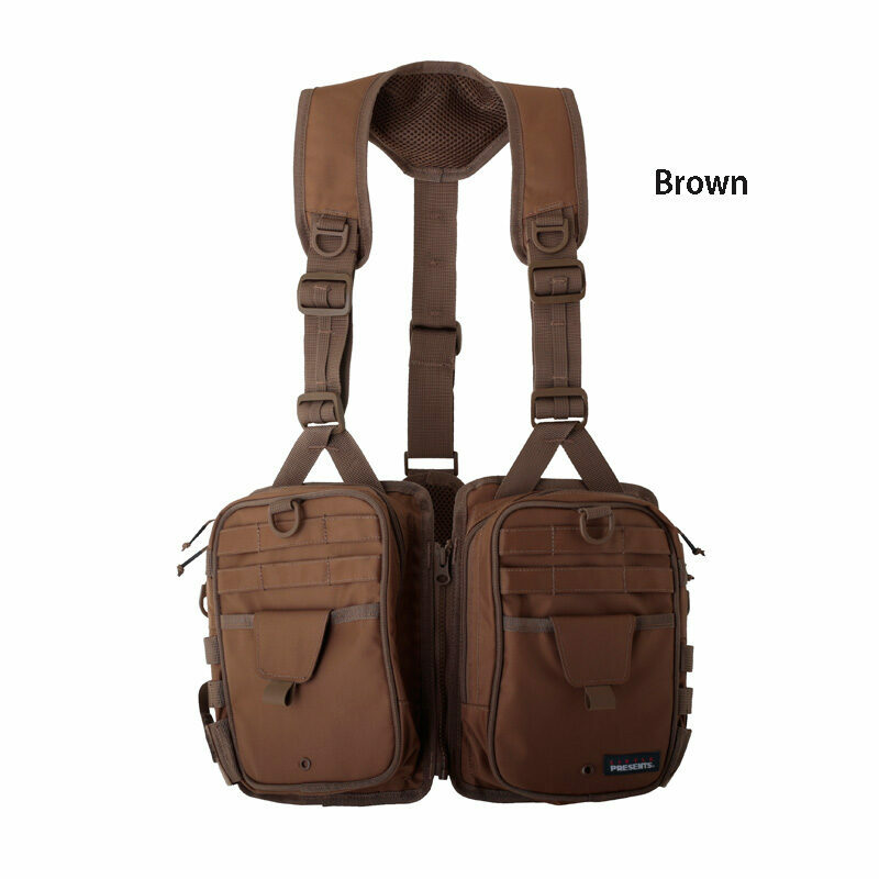 The braid processing on the back and shoulder belt allows for the attachment of carabiners, line cutters, four-ceps, etc. The D-ring on the back allows for the attachment of nets.
