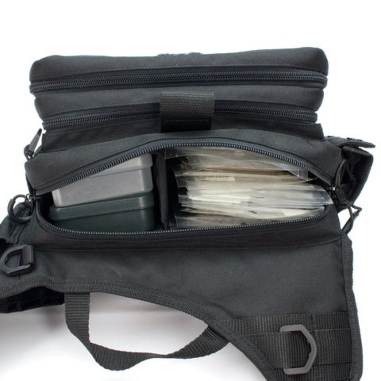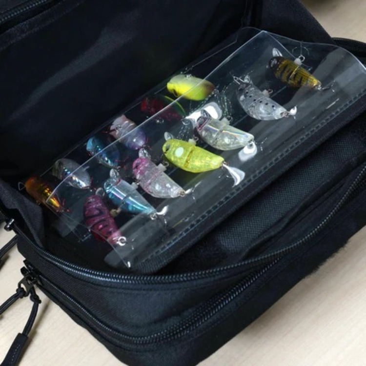 Includes a removable divider for organizing lure cases, worm packs, sunglasses, gloves, and other fishing gear