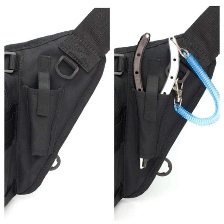 7 D-rings + 1 carabiner for attaching grips, cutters, or leashes