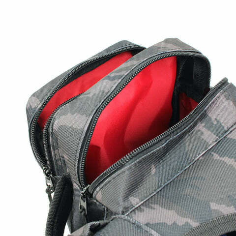 The interior is red for easy to see inside the bag.