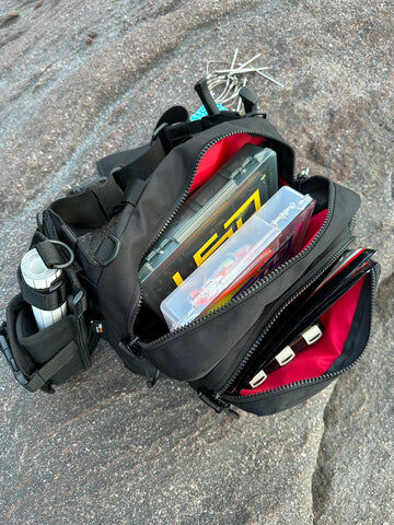 The sub-pocket provides smooth access to store smaller items like soft baits and small cases.