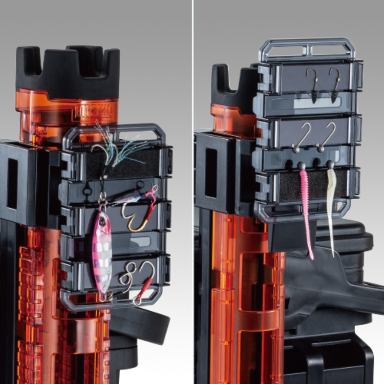 Can be attached to the multi-purpose holder and multi-holder of the Bucket Mouse series and Rangan System BOX series. The board surface has magnets and foam on both sides, so you can freely rearrange it according to your needs. By hooking needles such as jig heads and assist hooks for light games to the magnet, and hooking plugs for light games, jigs for SLJ, suttes for squid metal, etc. to the foam side, you can choose when changing devices. Since it can be placed, rotation can be performed smoothly, and the devices do not get entangled with each other, supporting stress-free fishing.