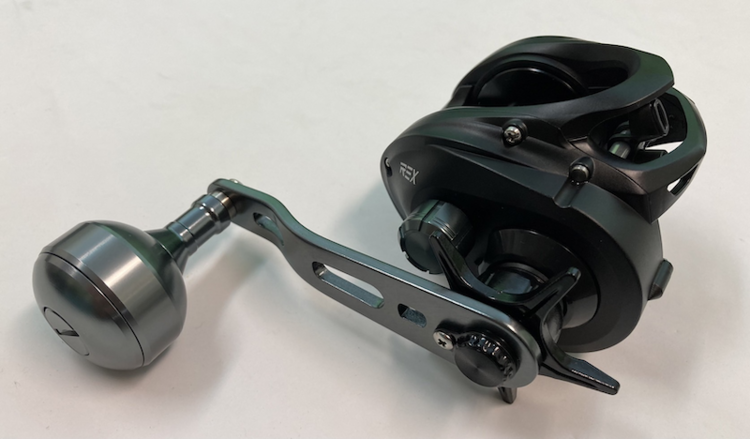 Below is a picture showing the product paired with the OMOTO REX reel. By replacing the handle with a powerful single handle, your dual-shaft reel instantly becomes a saltwater boat fishing reel.