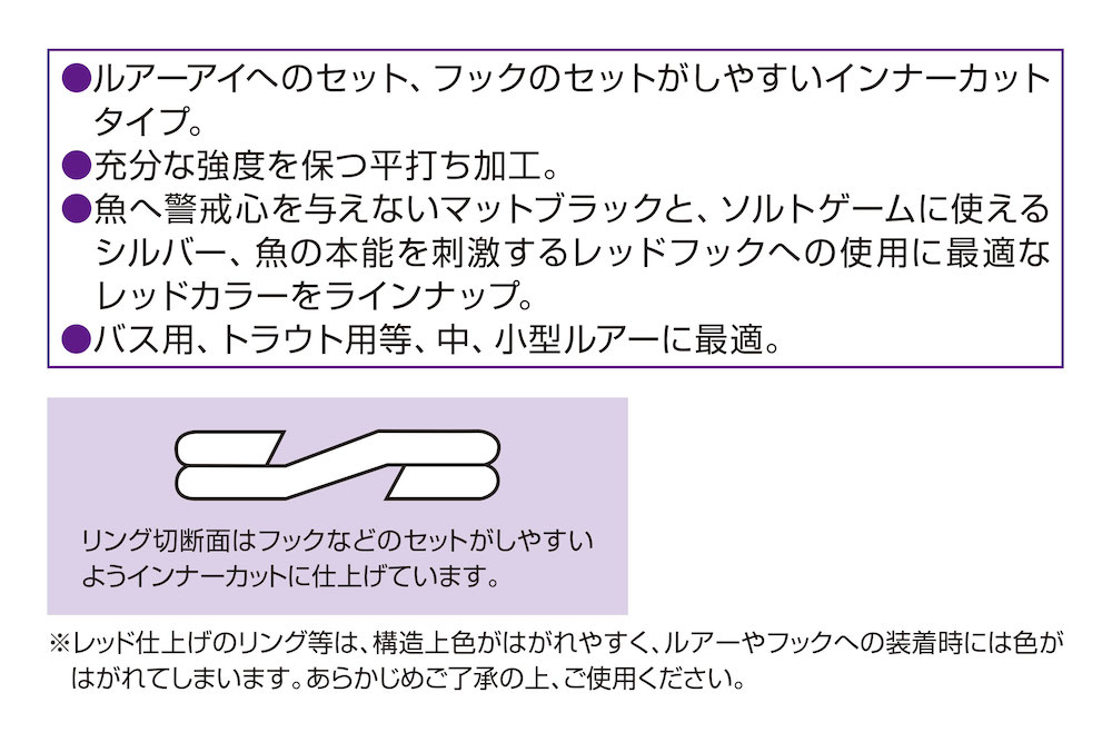 * Red-finished rings, etc. are easily peeled off in color due to their structure, and will lose color when attached to lures and hooks. Please use it after consent in advance.