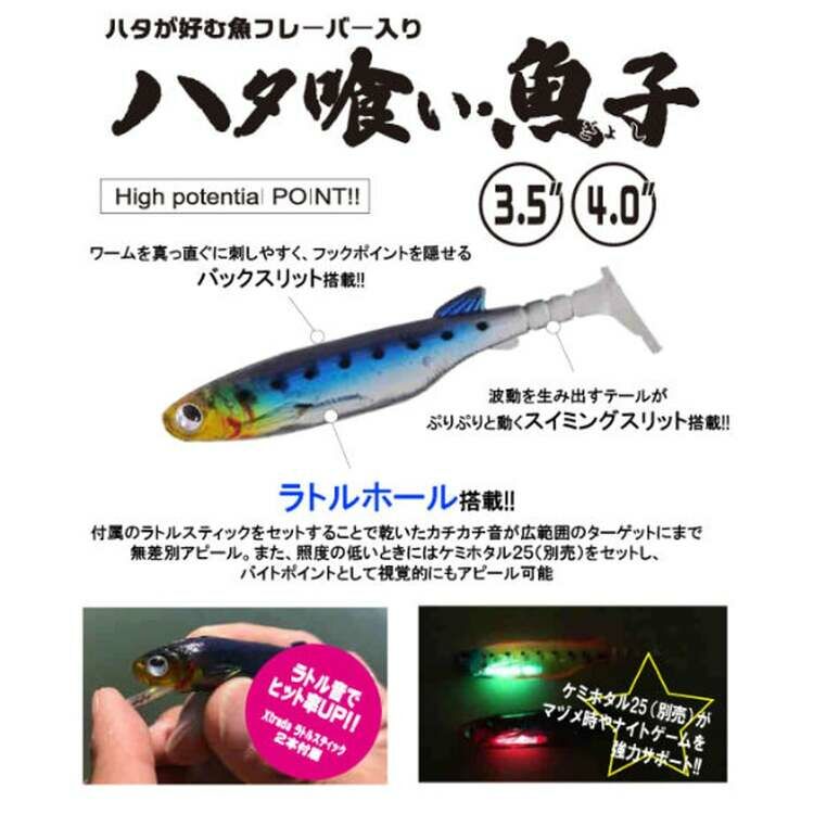 A shad-type worm that is extremely effective in fish-eating patterns. The rattle faithfully reproduces the clicking sound that occurs when a small fish is targeted by a fish eater and flees in a panic!! This is a highly appealing worm that appeals to a wide range of targets and directly stimulates the biting instinct.