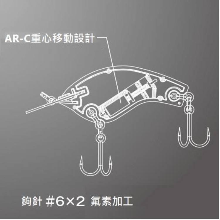 A spring-loaded structure running through the weighted wire. During casting, the weight shifts backward for excellent casting distance. Before entry into the water, the weight quickly returns to the forward position, allowing the lure to surface rapidly.