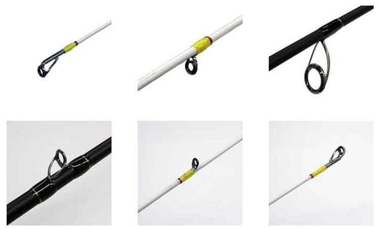 Spinning models: First two butt-side guides are stainless steel PKL type, others are titanium frame K guides