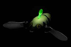 The luminescent body, which is inserted diagonally near the back of the head, has a highly exposed mounting method.