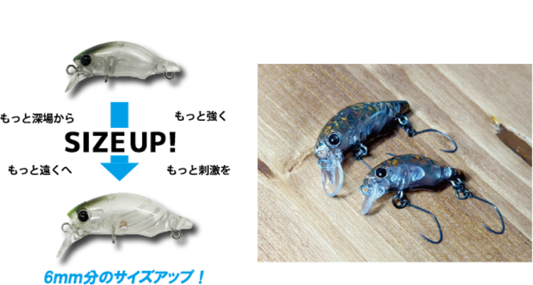 It inherits the DNA of the Puppet Surface, known for its flexibility in adjusting to fish behavior, but has been scaled up to cover situations that were previously harder to handle. With stronger appeal power and longer casting ability, it allows you to draw fish from farther points. When used in combination with Puppet Surface, it lets you adjust more effectively to the changing moods of fish, making topwater fishing more exciting and effective.