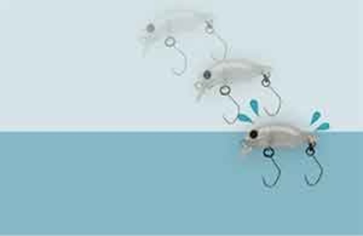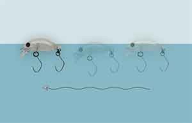 Normally, as a lure gets larger, the distance between front and rear hooks increases, reducing hook-up rates.