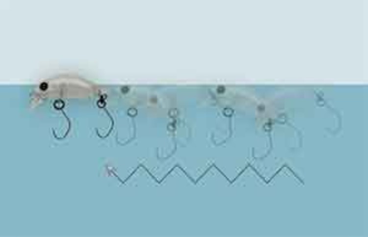By tapping or shaking the rod tip, you can create a 3D table-turning action, making the lure dart between the surface and just below.