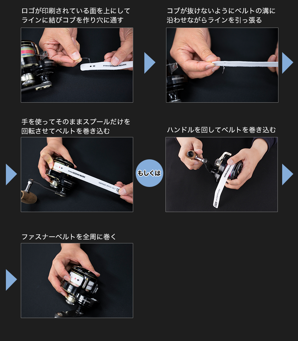 Easy to install and remove, using a thin fastener belt that does not interfere with spool replacement.