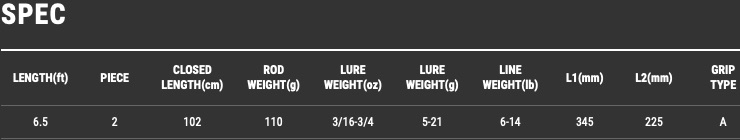 Versatile model with enough length for long-casting. Suitable for not only finesse application but also spinnerbait and crankbait around 14g.