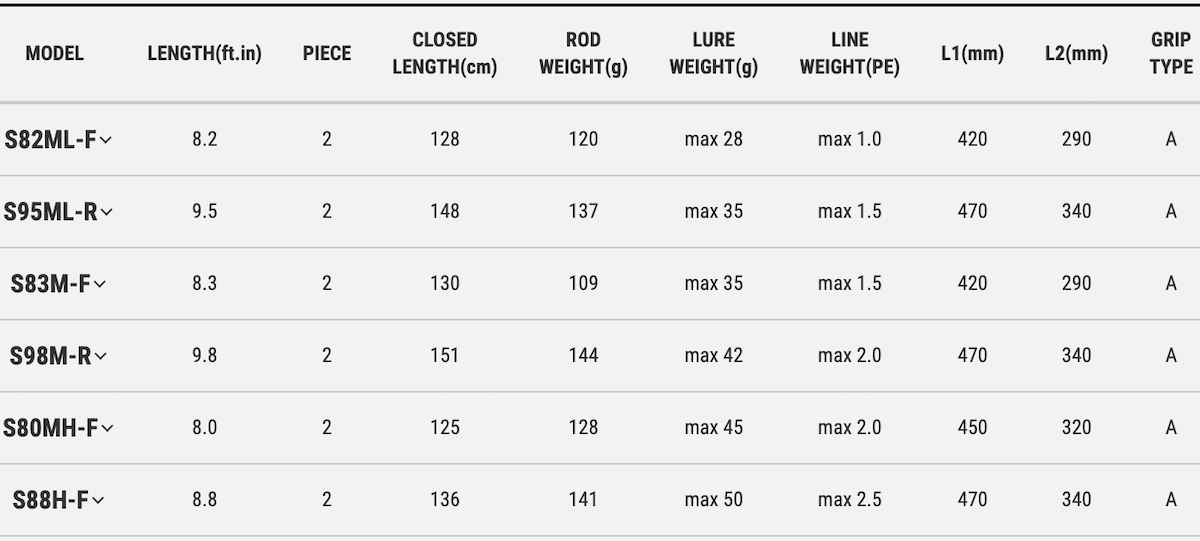 There are 2 Sub-series in lineup, “F” and “R”. F means “Fast action” and the F models are especially recommended for usage that need to feel the bottom of water, lure’s reaction, touch from fish. Due to the fast action and the elastic material, anglers can get clear information from water.