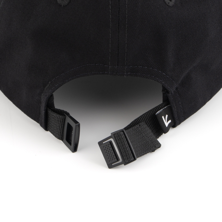 A symbol logo design cap recommended for town use. A classic and must-have design with a symbol logo embroidered on the front. The logo pin name is applied to the inside and belt part, showing attention to detail. Uses a rust-proof one-touch buckle.