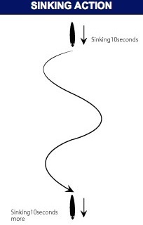 下沉時倒數十秒, 然後慢速的收線, 會有S型的泳姿, 然後重複這樣的過程 下沉的過程, 也是不錯的效果, 有時就會有魚來咬餌 |