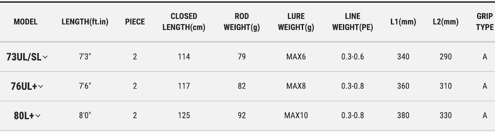 TARGET: Aji, small rockfish, LURE: Tiny jigheads, ACTION: EX FAST