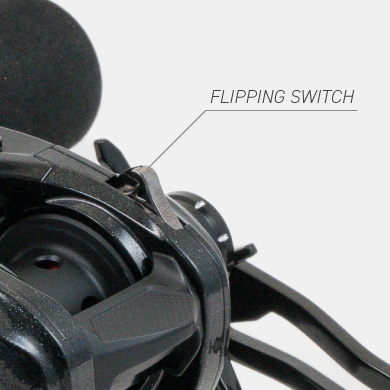 ■ Equipped with a flipping mechanism (switchable). Clutch off by continuing to hold down the thumb bar, and clutch on as soon as you release your finger. You can instantly hook a bite on the fall