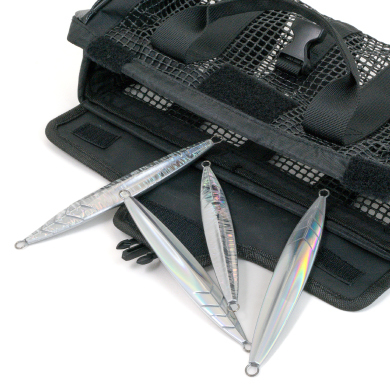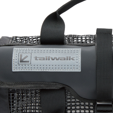 Wires at both ends of the opening keep the bag in shape, making it easy to open and close, and it can stand on its own regardless of how much jig is in it. The lid has a reflective panel with the tailwalk logo.