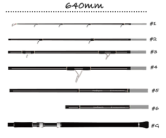 #5 and #6. Two types of butt sections, long and short, are included, and neither has a guide. This system allows you to change the length without changing the line. Not only the length, but also the power and hardness of the rod can be changed, so it is no exaggeration to say that they are two different rods.