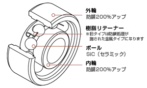 BOUSEI means corrosion-proof in Japanese. Using the ceramic ball, BOUSEI SiC Ball Bearing is not only extremely lighter but also stiffer and slicker compared to the traditional bearings made with steel. By decreasing the friction of bearing, you will be able to shorten the time for the spin to get its peak, which is likely to bring you the higher speed in spinning. This leads to an increase in initial lure velocities and improved casting distance.