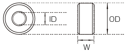 * OD: outside diameter, ID: inside diameter, W: width. All in millimeters.