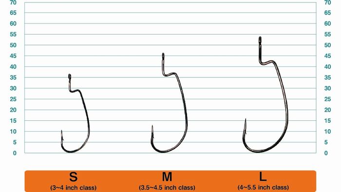 We conducted our own survey for revealing commonly used soft lure sizes in late years. Then we selected frequently used gape widths and wire diameters and optimized them as three sizes (S/M/L). This resulted in easy-to-choice hooks.