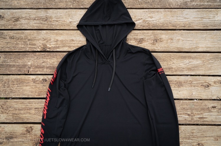 This is also the first long-sleeve model to include an adjustable hood with drawcords, improving fit and function for both athletic and everyday use.