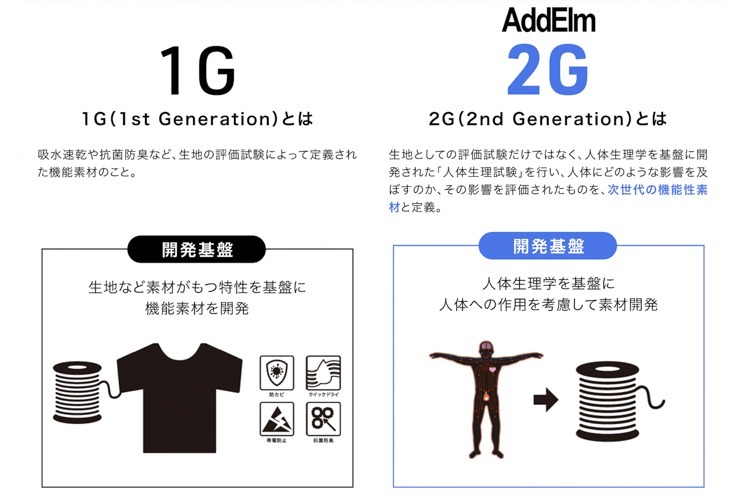 AddElm's 2G FABRIC TECH is a breakthrough material infused with mineral powders derived from natural ores and engineered based on human physiology. Unlike first-generation materials that simply provide stretch, moisture-wicking, and antibacterial properties, the add.02 fabric subtly stimulates the skin to enhance heart rate, muscle response, focus, and overall physical performance.